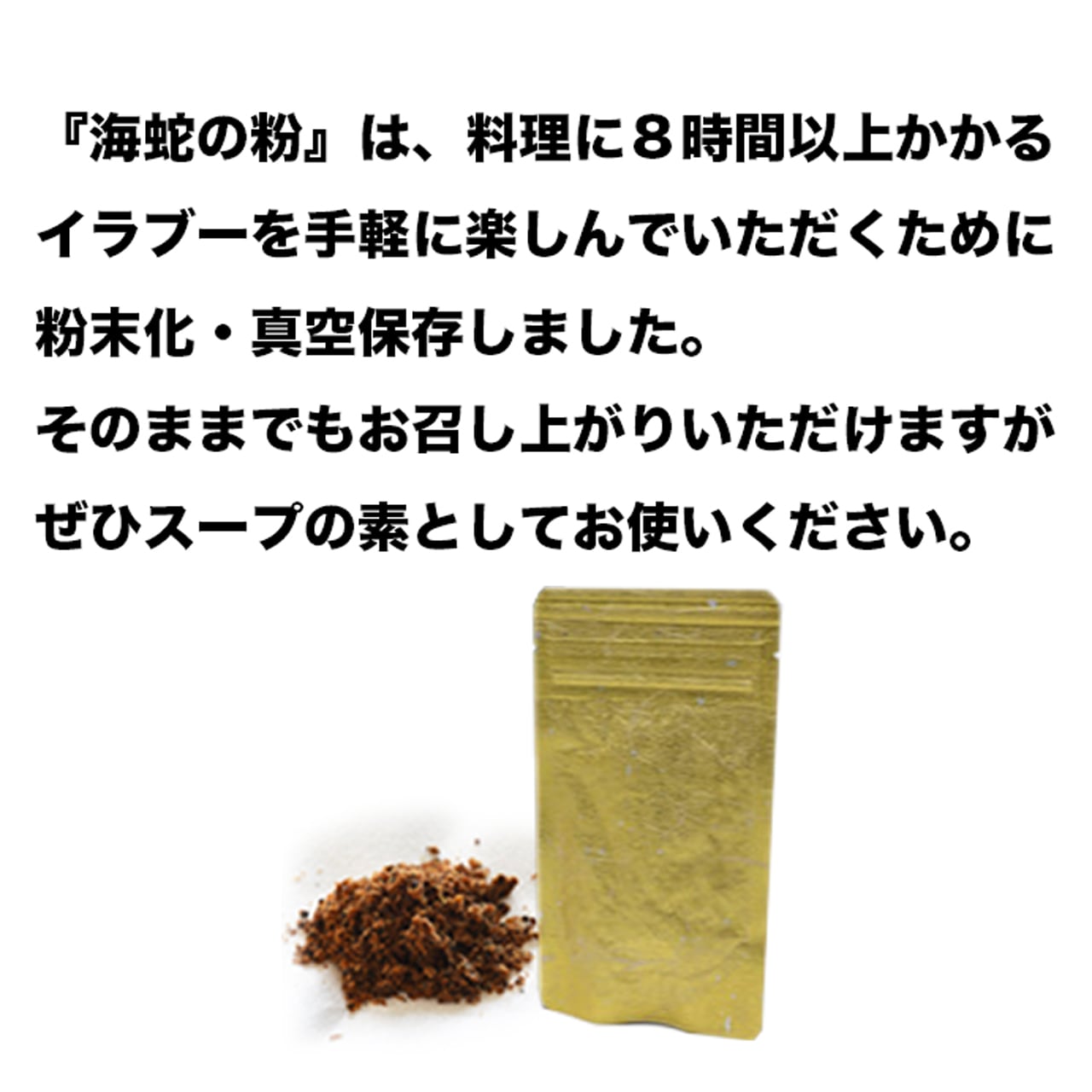 原材料:イラブー(エラブウミヘビ・ヒロオウミヘビ)燻製粉末